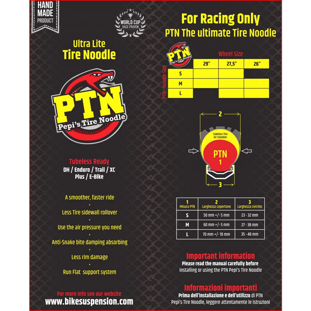 Du möchtest Deine Leistung verbessern? Egal ob Downhill, Enduro, Cross Country, All Mountain oder eBike die MaXalami PTN – Pepi’s Tire Noodle ist das Geheimnis der Champions.